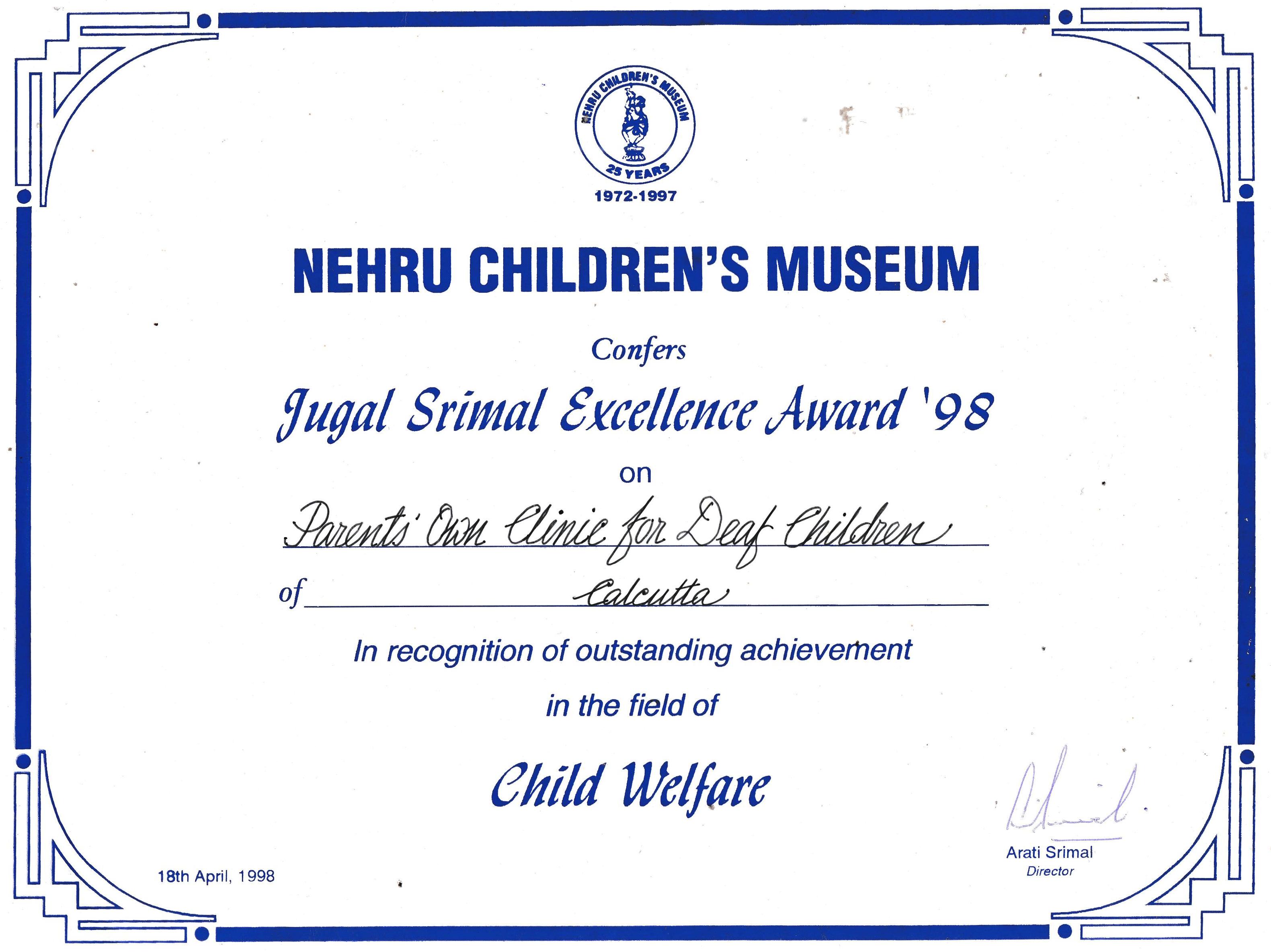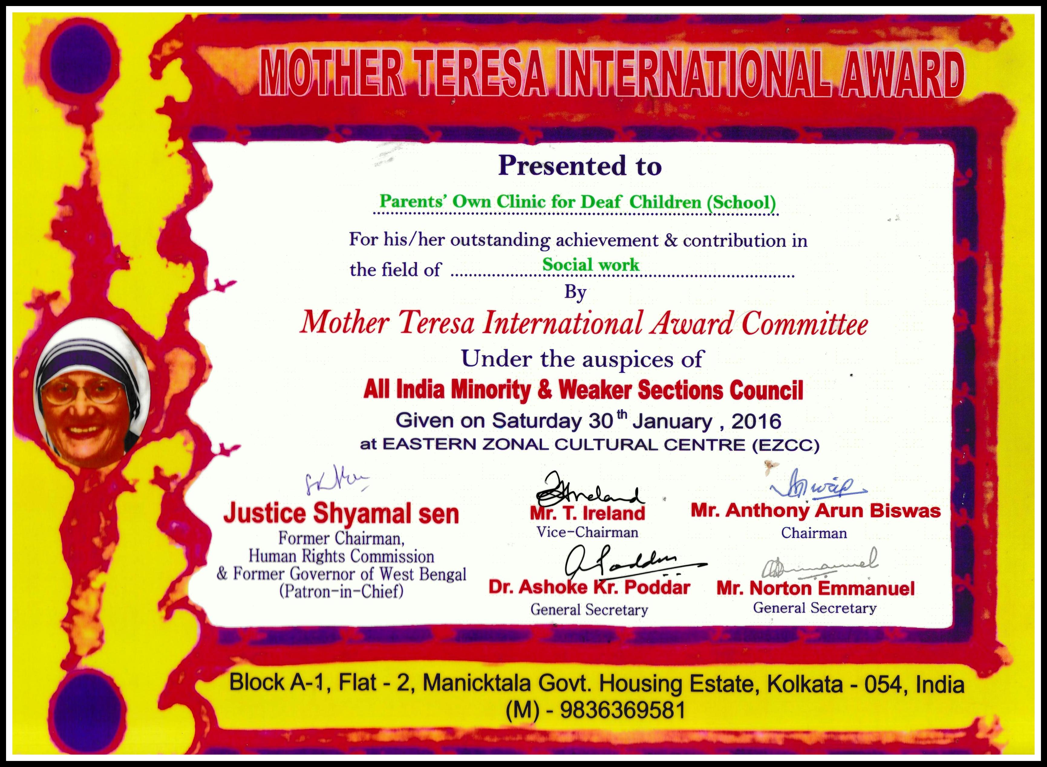 Our school 'Parents' Own Clinic for Deaf Children' is a Special School, for the Hearing Impaired Children, aged between 2 to 12 years, where we teach them to talk through auditory-oral education. The goal of this education, is to provide these children, with the ability to listen and speak like people with normal hearing. No Sign language is used. We use oral method of teaching. It is an N.G.O., non-residential, co- educational day school, run by Public donations and an yearly Central Govt. Grant. No fees/charges are taken from any student.